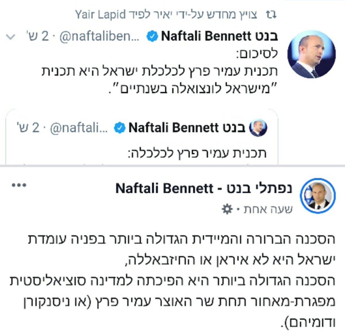 Yoav Rabinovitz En Twitter מה נפתלי בנט עשה היום אמר שניסנקורן כחול לבן מאיים יותר על קיומה של ישראל מחזבאללה מה יאיר לפיד עשה היום ריטווט את נפתלי בנט לא